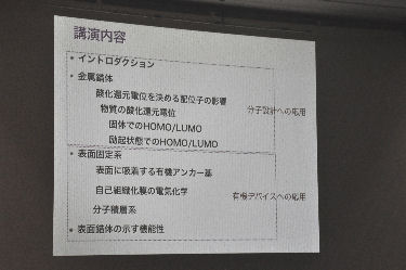 「表面固定された金属錯体の光・電子機能 - 電気化学的手法を用いた評価法」 中央大学大学院 理工学研究科 教授 芳賀 正明 ◇芳賀先生からの紹介コメント◇ 可視から近赤外領域に光吸収をもつとともにレドックス活性など多様な機能性をもつ金属錯体は表面固定することで光電変換膜や電子デバイスとして利用することが可能であることから、いろいろな分野から注目されている。 本講演では、レドックス活性な金属錯体をITO表面に固定する場合の基本的な事項(基板洗浄、アンカー基の選択など)や表面での電気化学手法を用いた評価法(被覆量など)、光電気化学について我々の研究例を紹介しながら解説する。 |